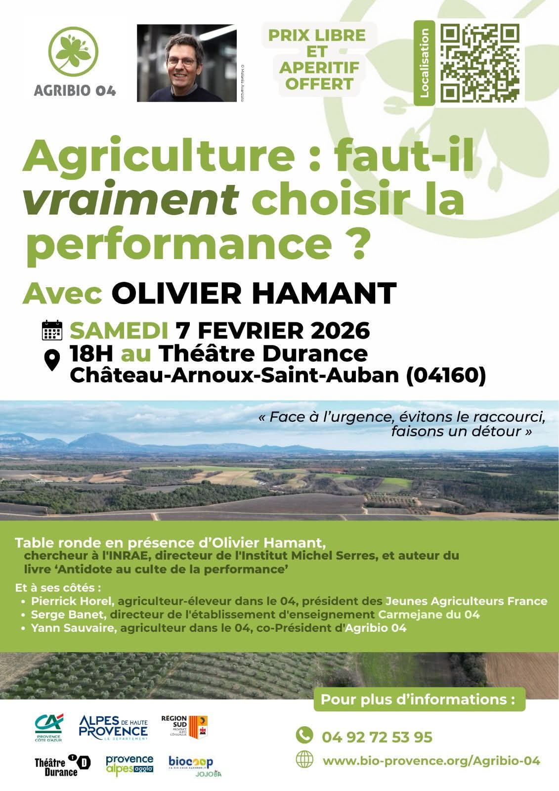 Agriculture: faut-il vraiment choisir…Olivier Hamant 7 février Théâtre Durance