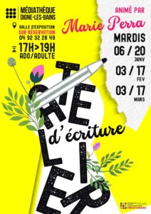 Atelier écriture 3/17 mars médiathèque Digne les Bains